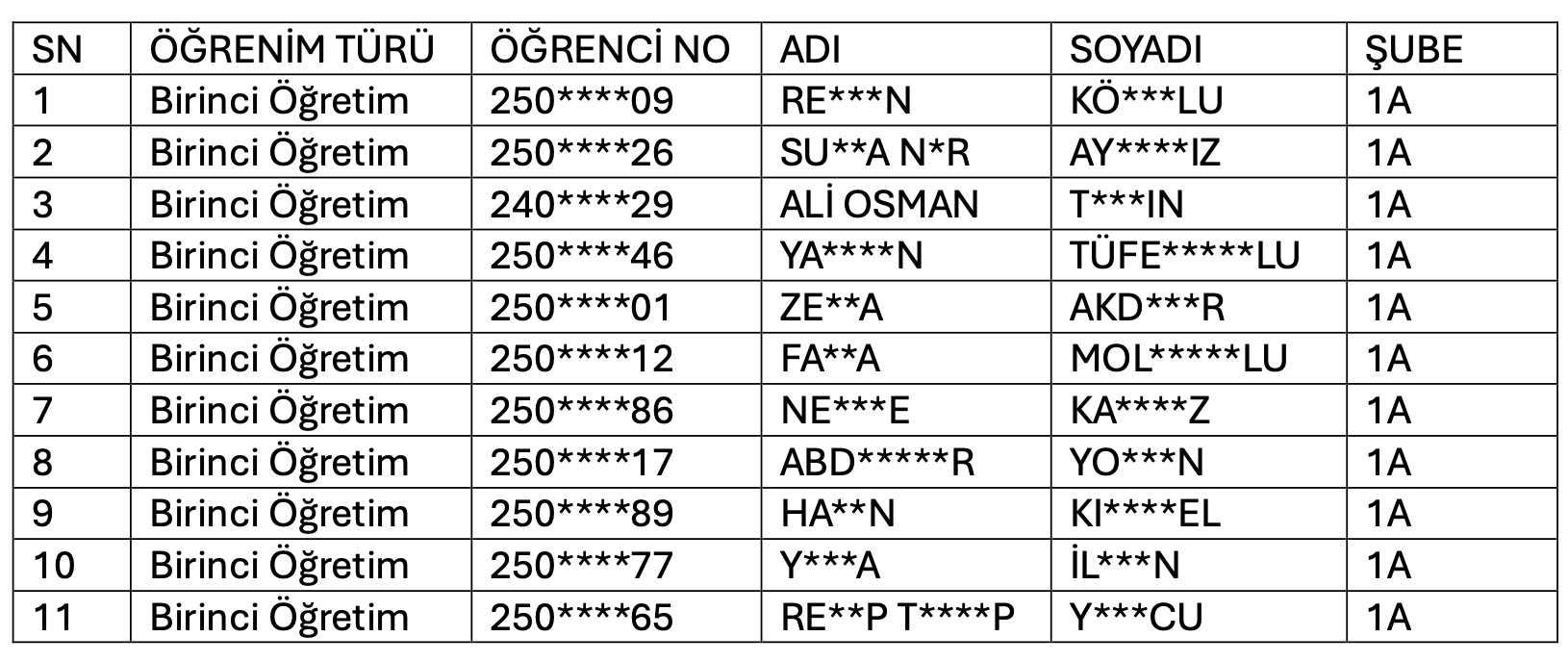 Muafiyet Sınavını (18.09.2025) Başarıyla Geçen Öğrencilerimizin Ders Kayıtlanmaları ve Şubeleri