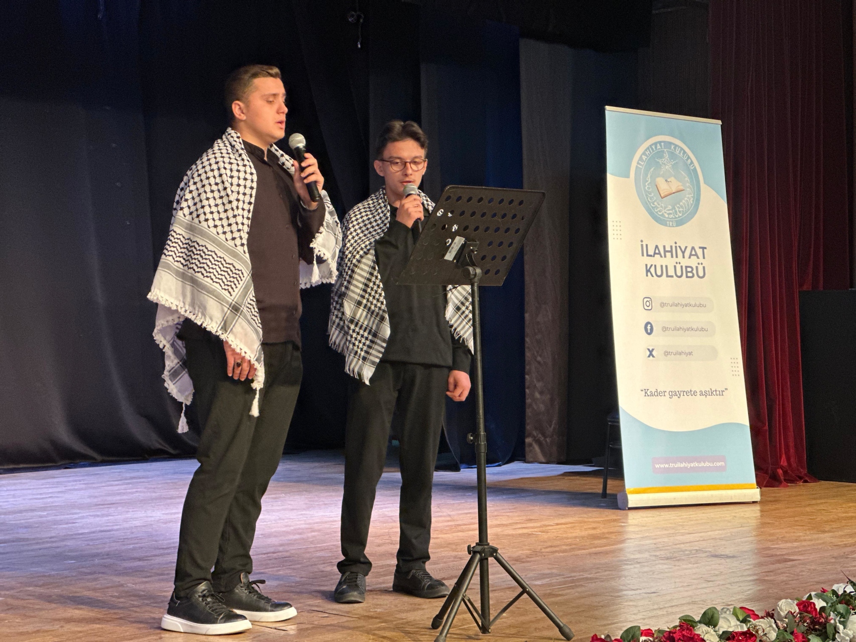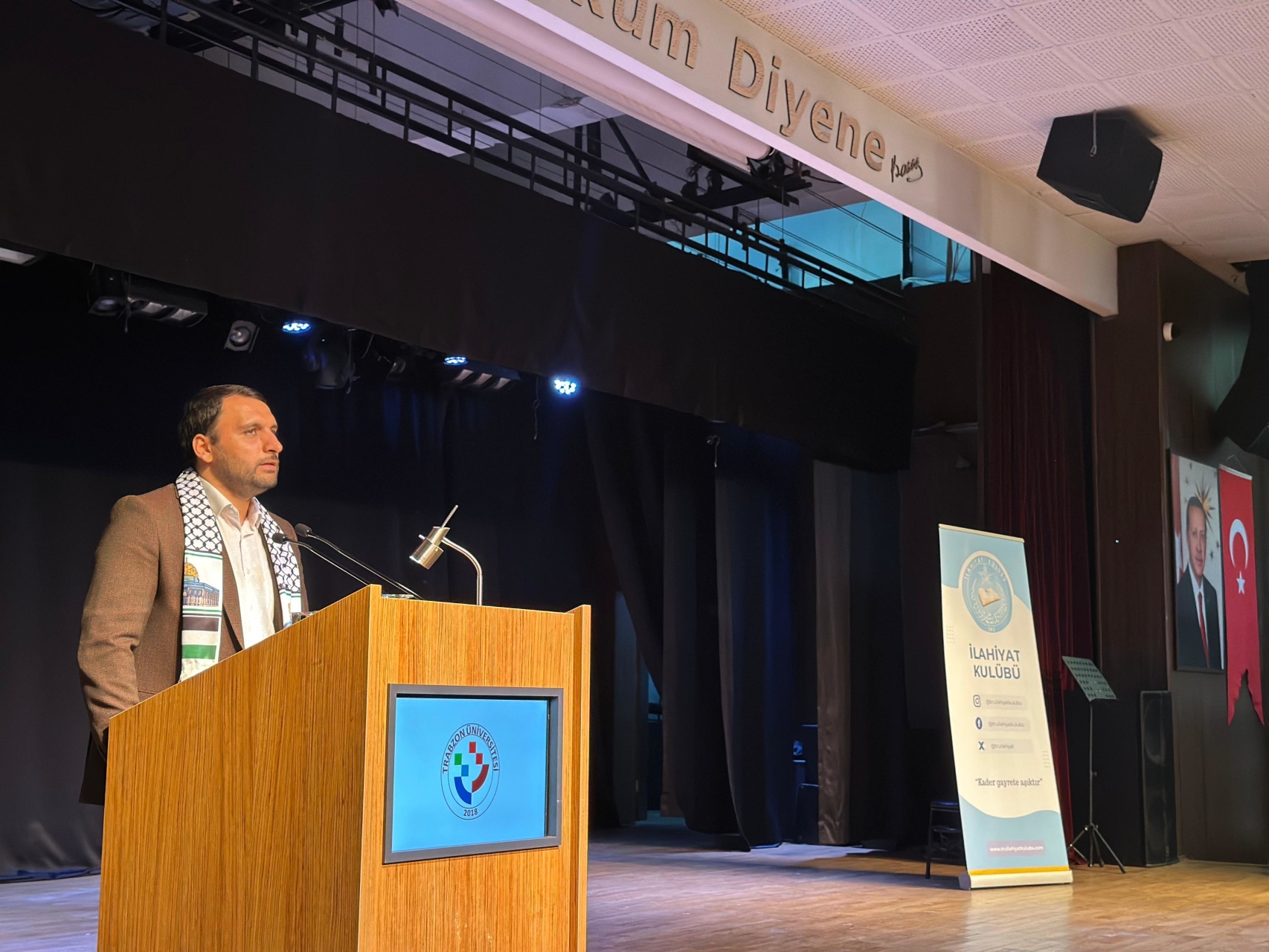 Trabzon Üniversitesi’nde Trabzon Üniversitesi İlahiyat Fakültesi ve İlahiyat Kulübü iş birliğiyle düzenlenen “İman, Direniş ve Sabır: Filistin’den İbretler” başlıklı program, 15 Ekim Çarşamba günü Mahmut Goloğlu Kültür Merkezi’nde gerçekleştirildi. Etkinlikte, Filistin davası bir kez daha gündeme taşındı ve katılımcılara önemli mesajlar verildi.