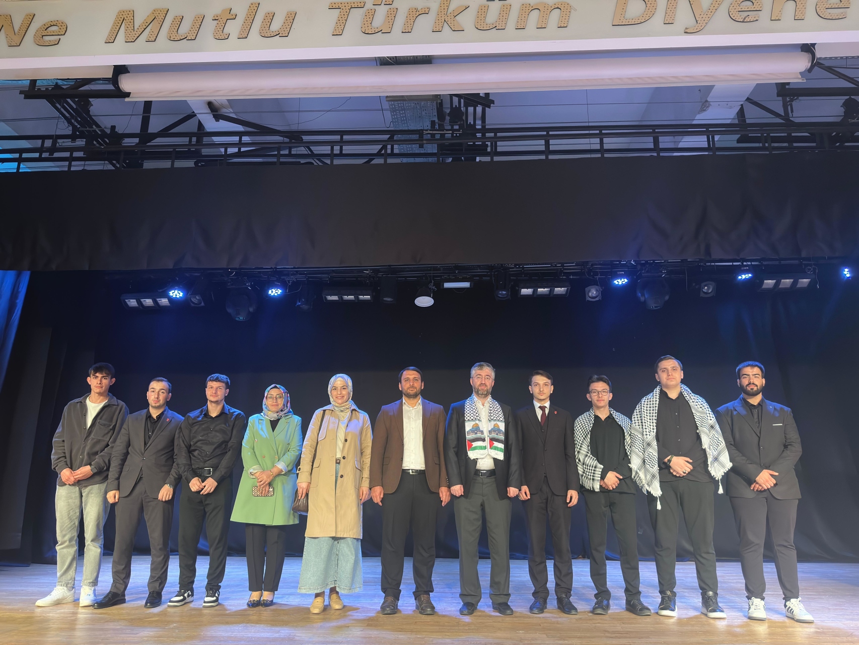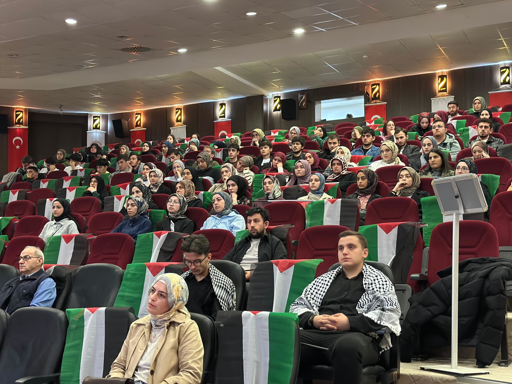 Program, Öğr. Gör. Mustafa Kurukız hocanın Kur’an-ı Kerim tilavetiyle başladı. Ardından Doç. Dr. Ahmet Yazıcı, Filistin halkının yıllardır süregelen zulüm karşısındaki iman, direniş ve sabır mücadelesini etkileyici bir konuşmayla anlattı. Yazıcı, Filistin davasının yalnızca bir coğrafi sorun değil, aynı zamanda bir vicdan ve insanlık meselesi olduğunu vurgulayarak, bu davanın unutulmaması gerektiğinin altını çizdi.