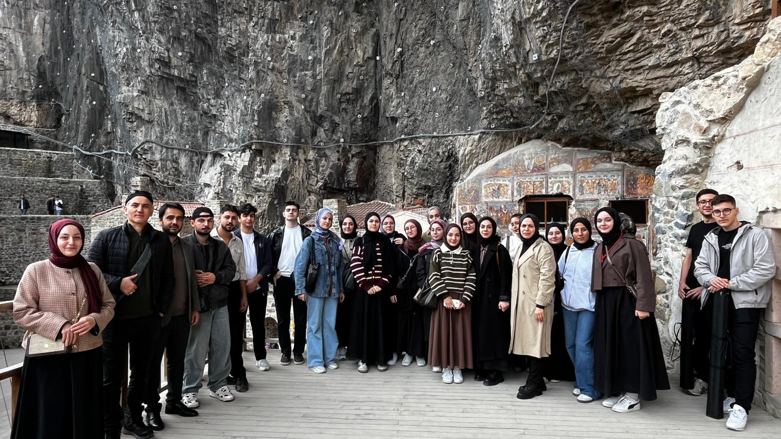 Trabzon Üniversitesi İlahiyat Fakültesi ile Arapça Kulübü iş birliğinde düzenlenen etkinlik kapsamında, hazırlık sınıfı öğrencileri Sümela Manastırı’na gezi gerçekleştirdi. Dinler Tarihi Anabilim Dalı öğretim üyesi Doç. Dr. Ali Gül’ün rehberliğinde gerçekleştirilen gezide, öğrenciler bölgenin tarihî ve dinî dokusu hakkında bilgi edindi. Fakülte araştırma görevlileri Ayşenur Ayan ve Dr. Ramazan Aslan da öğrencilere eşlik etti.
