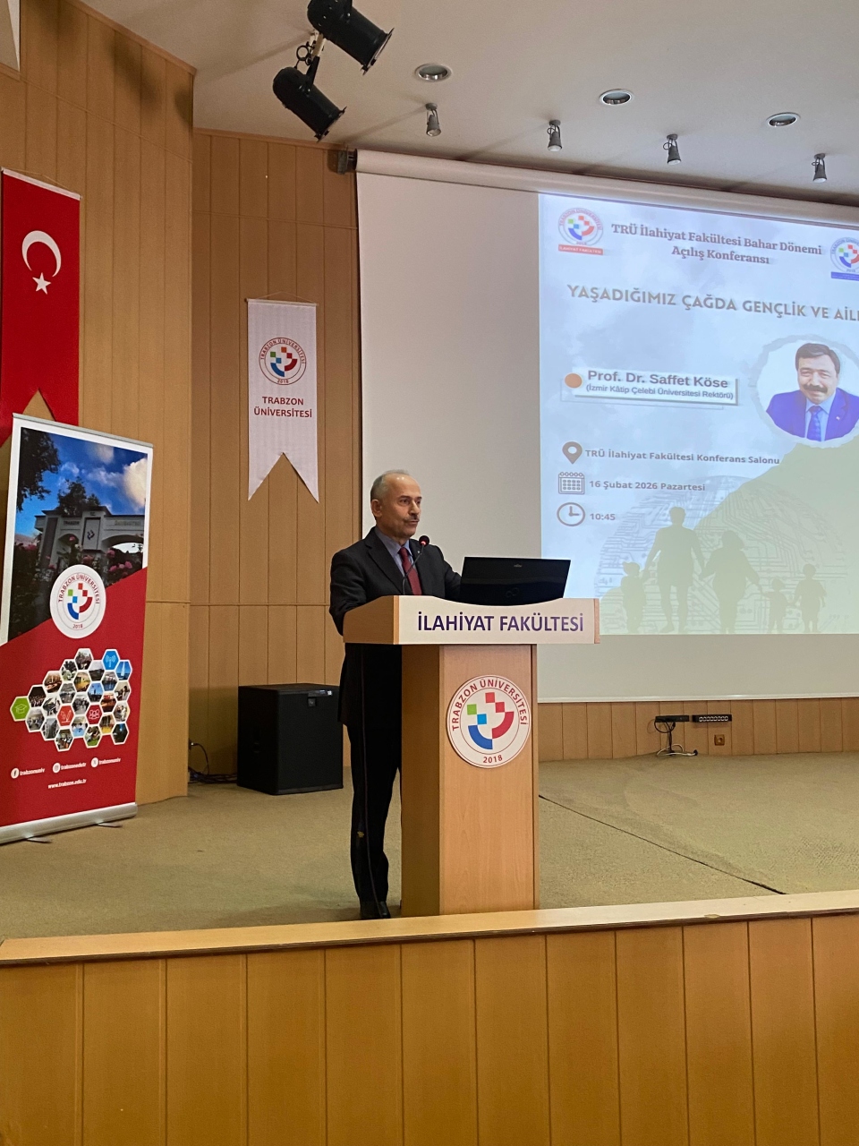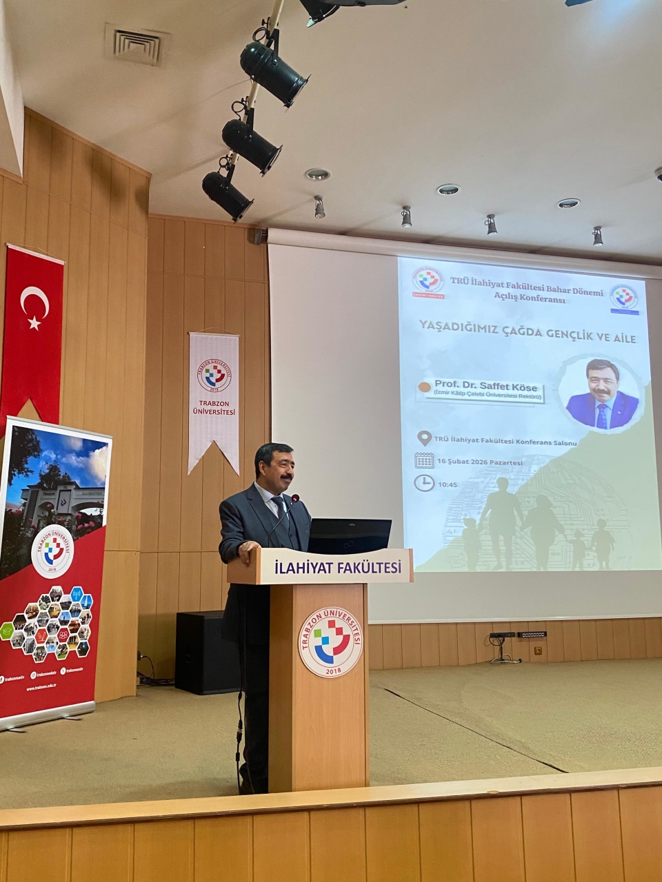 Fakültemizde, Trabzon Üniversitesi İslamî İlimler Uygulama ve Araştırma Merkezi iş birliğiyle düzenlenen “Yaşadığımız Çağda Gençlik ve Aile” başlıklı konferans gerçekleştirildi.