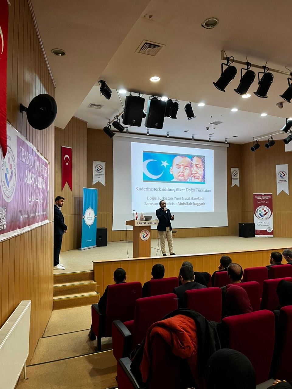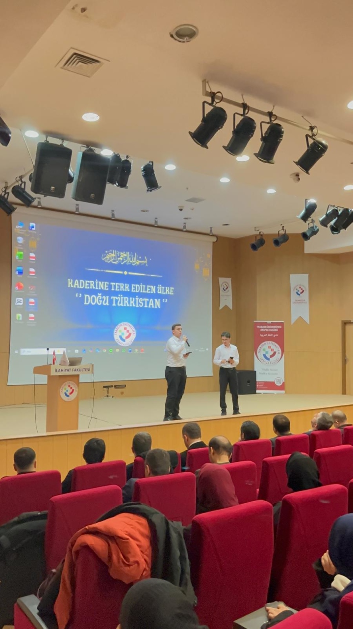 Fakültemizde 26 Şubat 2026 tarihinde İlim Yayma Cemiyeti ve Arapça Kulübü iş birliğiyle düzenlenen “Kaderine Terk Edilen Ülke Doğu Türkistan” adlı program gerçekleştirildi. Açılış konuşmasının ardından slayt sunumu, video gösterisi ve ilahi dinletici icra edildi. Akabinde programa konuşmacı olarak katılan Abdullah Kaşgarlı Doğu Türkistan'ın acı tecrübesine dair önemli bilgiler sundu. Ödül takdimi sonrasında yapılan çekilişle program sona erdi.